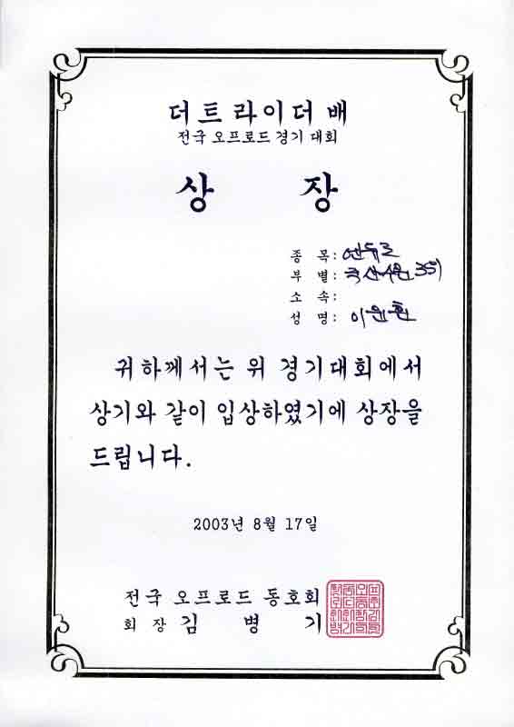 2003년 8월17일 장흥에서 순수 오프로드를 좋아하는 사람들이 모여서 시합을 했다…