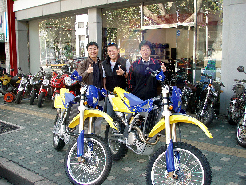 2006년 코리안 엔듀로 챔피언쉽 에 참가할 국제 선수(일본)을 공항에서 모시고 바로 렌탈을 해주실가게로 향했다. 올바이크 사장님과 이케마치선수, 타무라선수 (왼쪽으로부터)